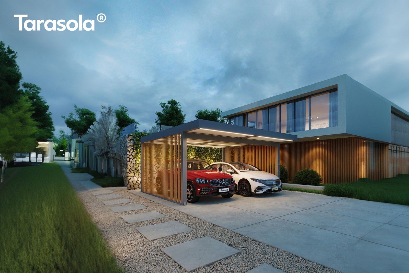 Nur ein kurzer Schritt aus der Haustür in Ihren Carport, der Ihr Fahrzeug zuverlässig schützt und Ihrem Zuhause gleichzeitig einen modernen, wertigen Akzent verleiht.